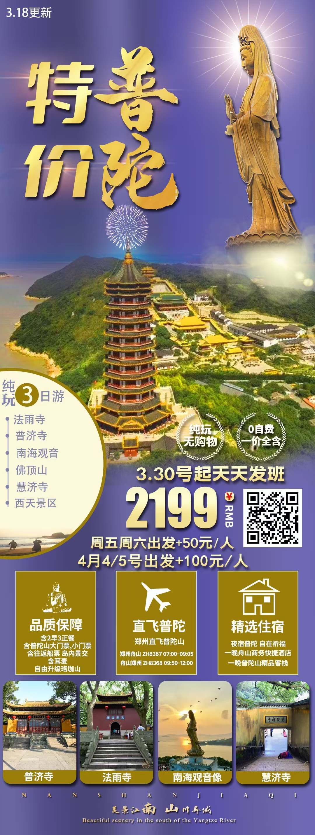 祈福之旅普陀山直飛舟山三日游